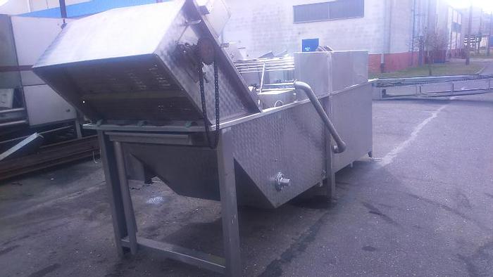 Lavadora agua-aire con agitador para lavado hortalizas de hoja "TEN BRINK" El conjunto está equipado con: * Unidad de cinta de extracción; * Motowheel drive; * Bomba de aireación de agua de baño. Dimensiones: * Longitud - 4460 mm; * Ancho - 1.560 mm; * Altura - 2.150 mm. Dimensiones de la bañera: * Longitud - 4120 mm; * Ancho - 1.080 mm; * Altura de carga - 1.200 mm.